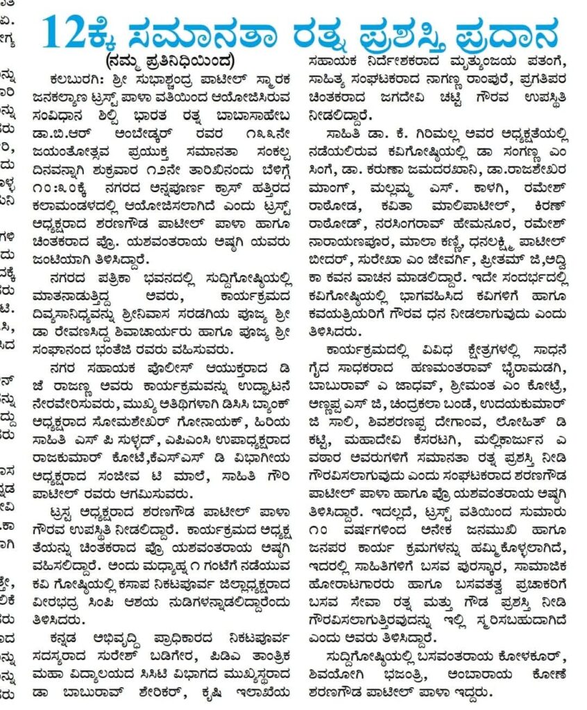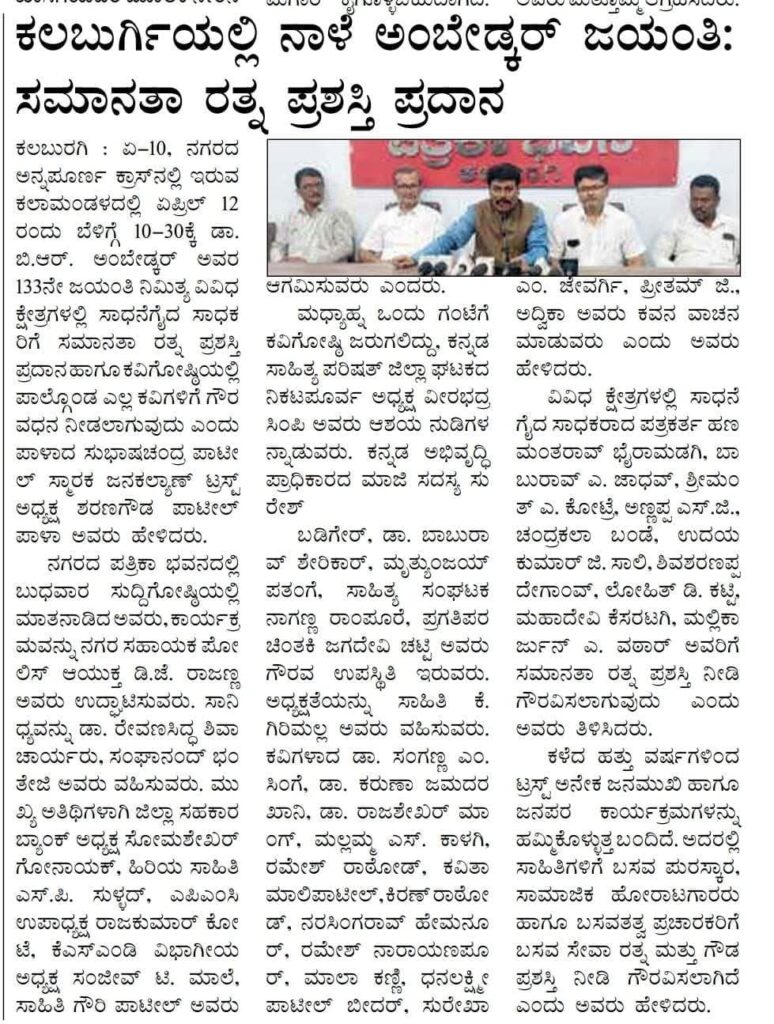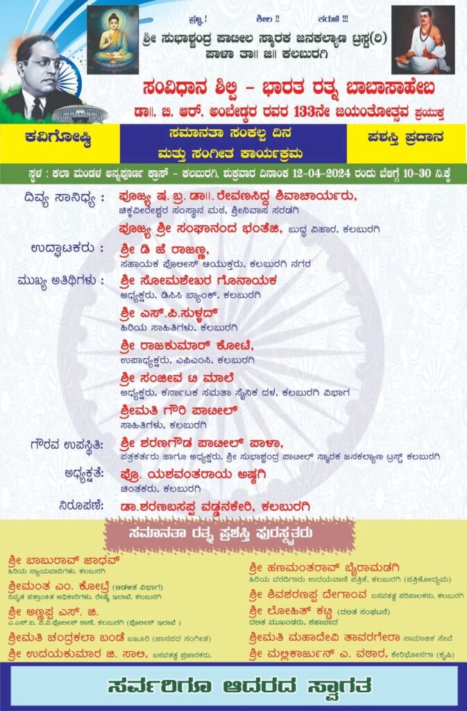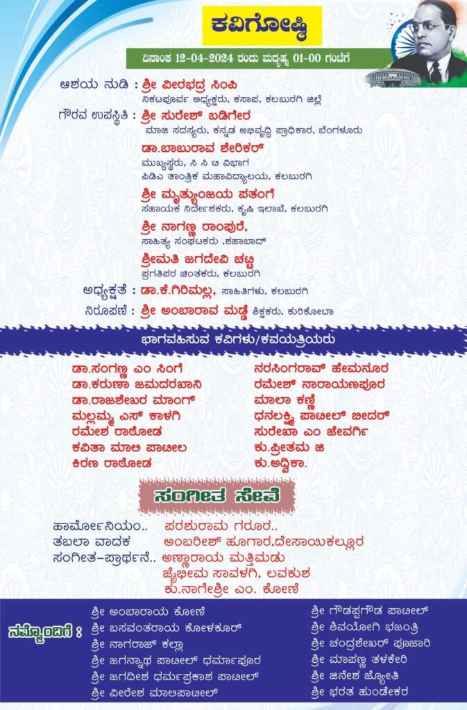 ಡಾ.ಬಾಬಾಸಾಹೇಬ ಅಂಬೇಡ್ಕರ್ ಅವರ ಜಯಂತಿಯಂದು ಕವನ ವಾಚನ ಕಾರ್ಯಕ್ರಮ ನಡೆಯಿತು.೨೦೨೪