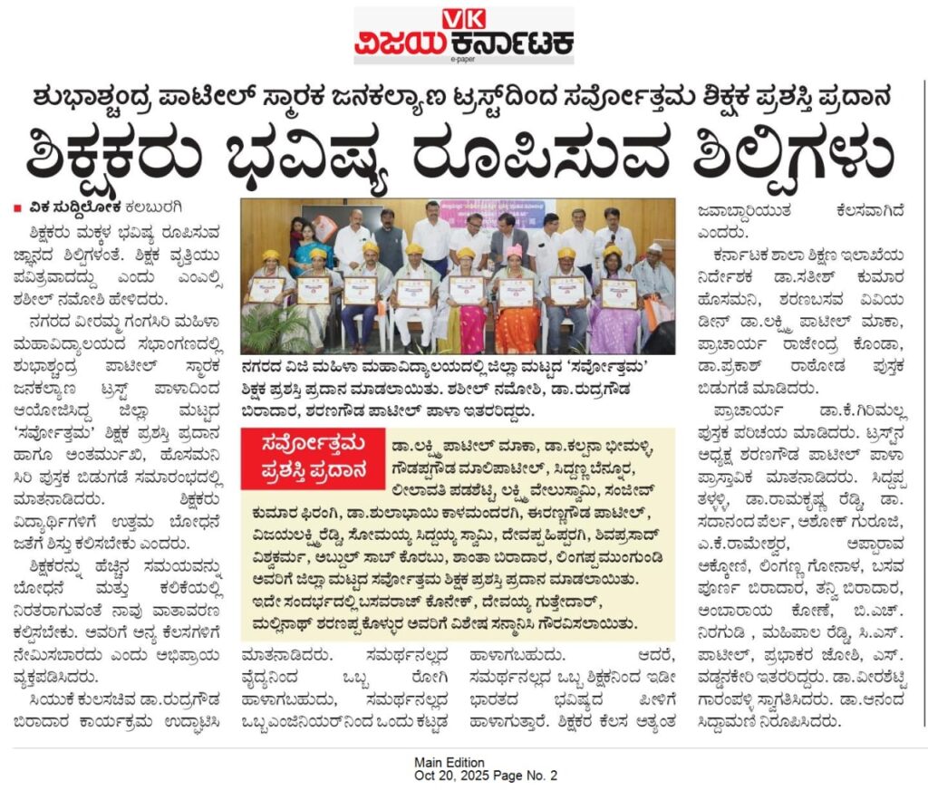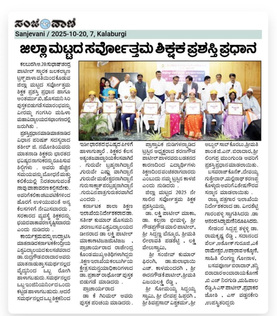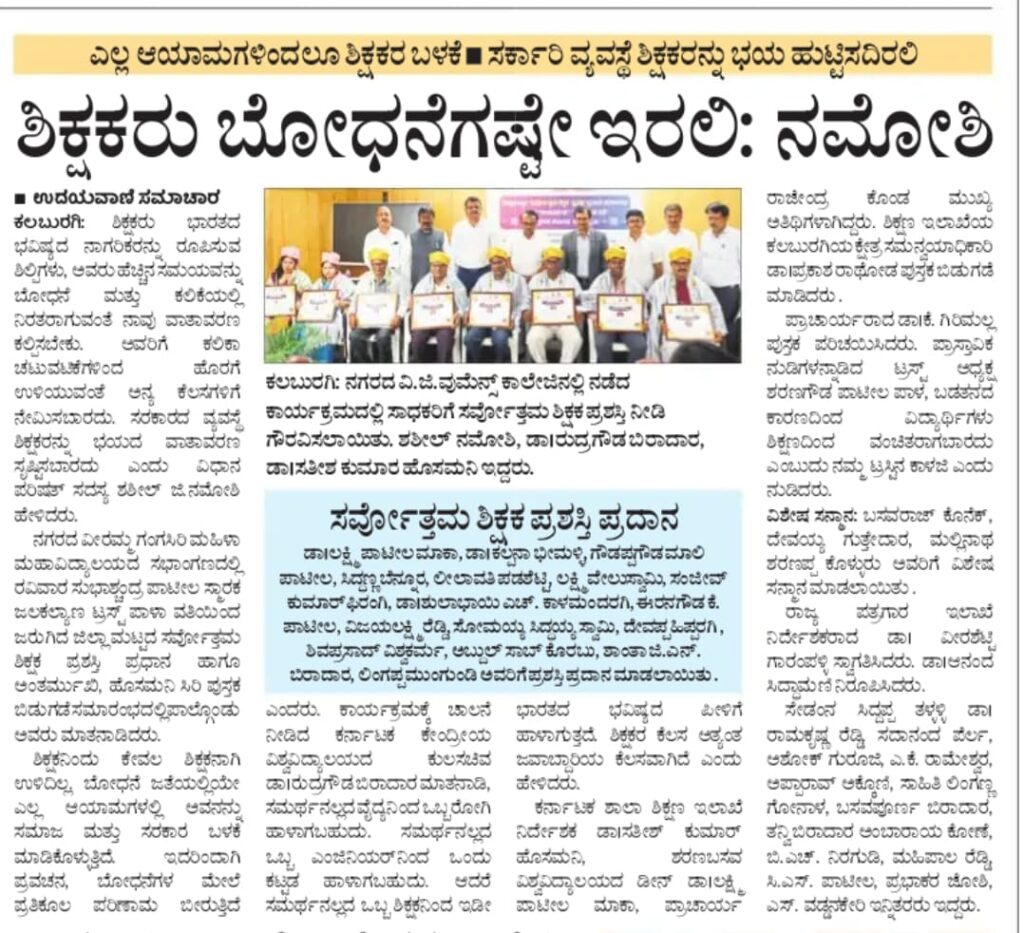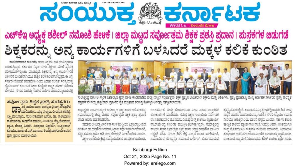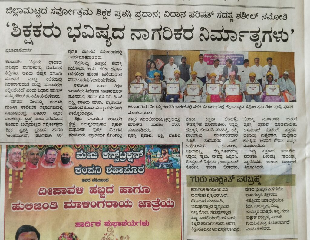 2 responses to ““ಸರ್ವೋತ್ತಮ ಶಿಕ್ಷಕ” ಪ್ರಶಸ್ತಿ”