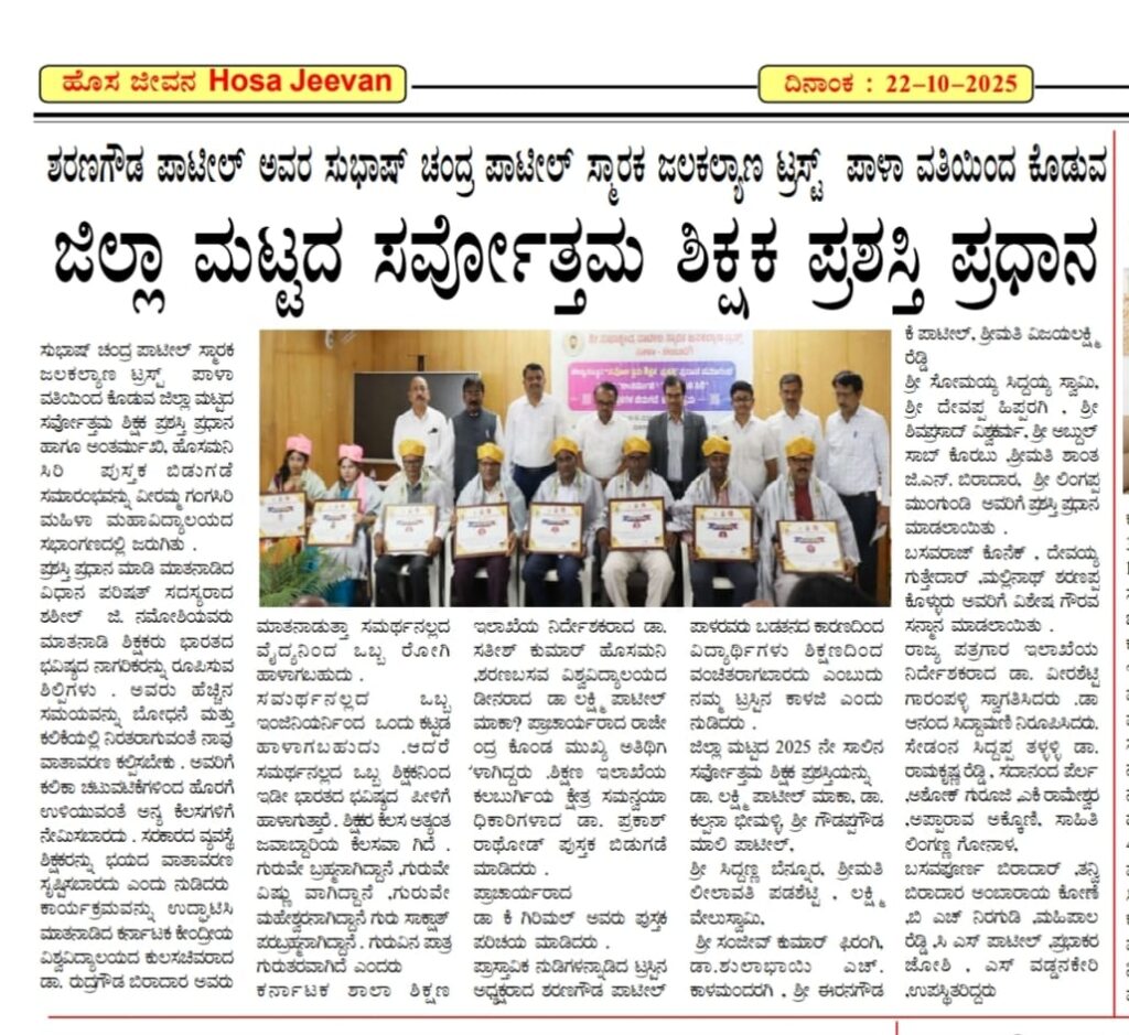 1. ಎಲೆ ಮರೆಯ ಕಾಯಿಯಂತೆ ಕೆಲಸ ಮಾಡುತ್ತಿರುವ ಶಿಕ್ಷಕರನ್ನು ಗುರುತಿಸಿ ಪ್ರಶಸ್ತಿಯನ್ನು ನೀಡಿ ಗೌರವಿಸುವ ಈ ಜನ ಕಲ್ಯಾಣ ಟ್ರಸ್ಟ್ ಗೆ ಅನಂತ ಧನ್ಯವಾದಗಳು .