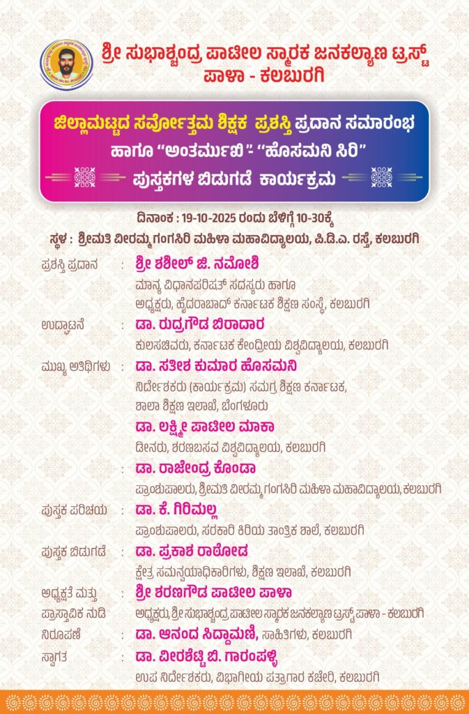 ಜಿಲ್ಲಾಮಟ್ಟದ “ಸರ್ವೋತ್ತಮ ಶಿಕ್ಷಕ” ಪ್ರಶಸ್ತಿ ಪ್ರದಾನ ಸಮಾರಂಭ ಹಾಗೂ ಅಂತರ್ಮುಖಿ ಹೊಸಮನಿ ಸಿರಿ ಪುಸ್ತಕಗಳ ಲೋಕಾರ್ಪಣೆ ಸಮಾರಂಭ